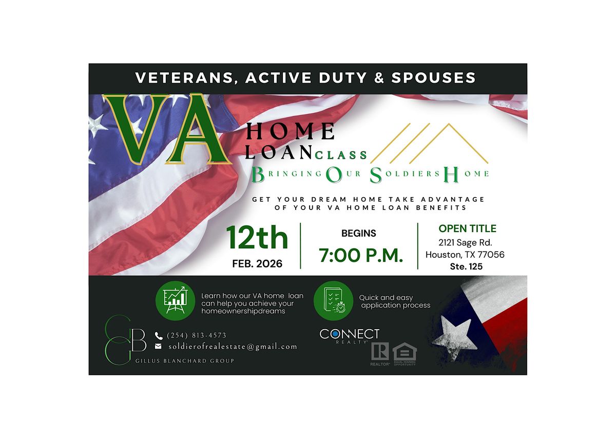 Welcome to the VA Home Loan class! In this session, we'll walk you through the ins and outs of the VA loan program, a unique benefit for eligible veterans, active-duty service members, and their families. You’ll learn about the key features of VA loans, including no down payment requirements, competitive interest rates, and the loan limits, as well as the steps involved in applying for and securing your VA loan. By the end of this class, you'll have the knowledge and confidence to navigate the VA loan process and take the next step toward homeownership