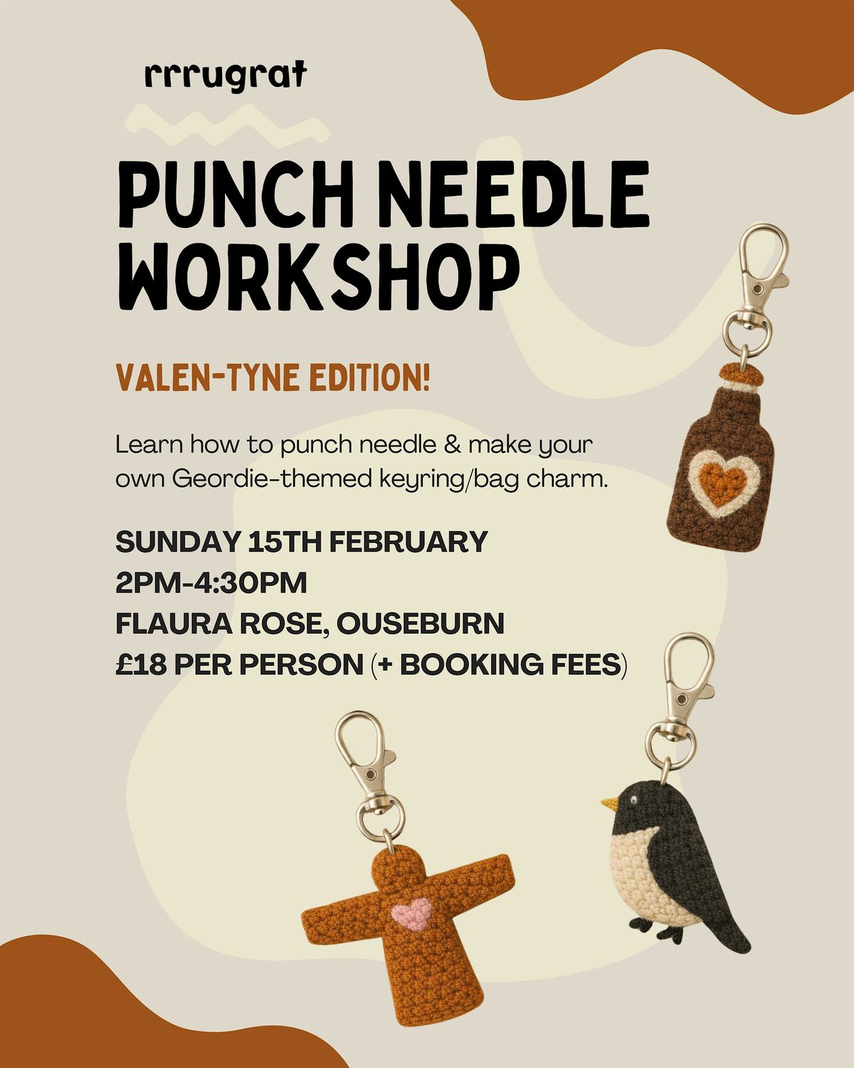 Learn the basics of punch needle in this beginner-friendly workshop, and create your own Geordie-themed keyring/bag charm!
