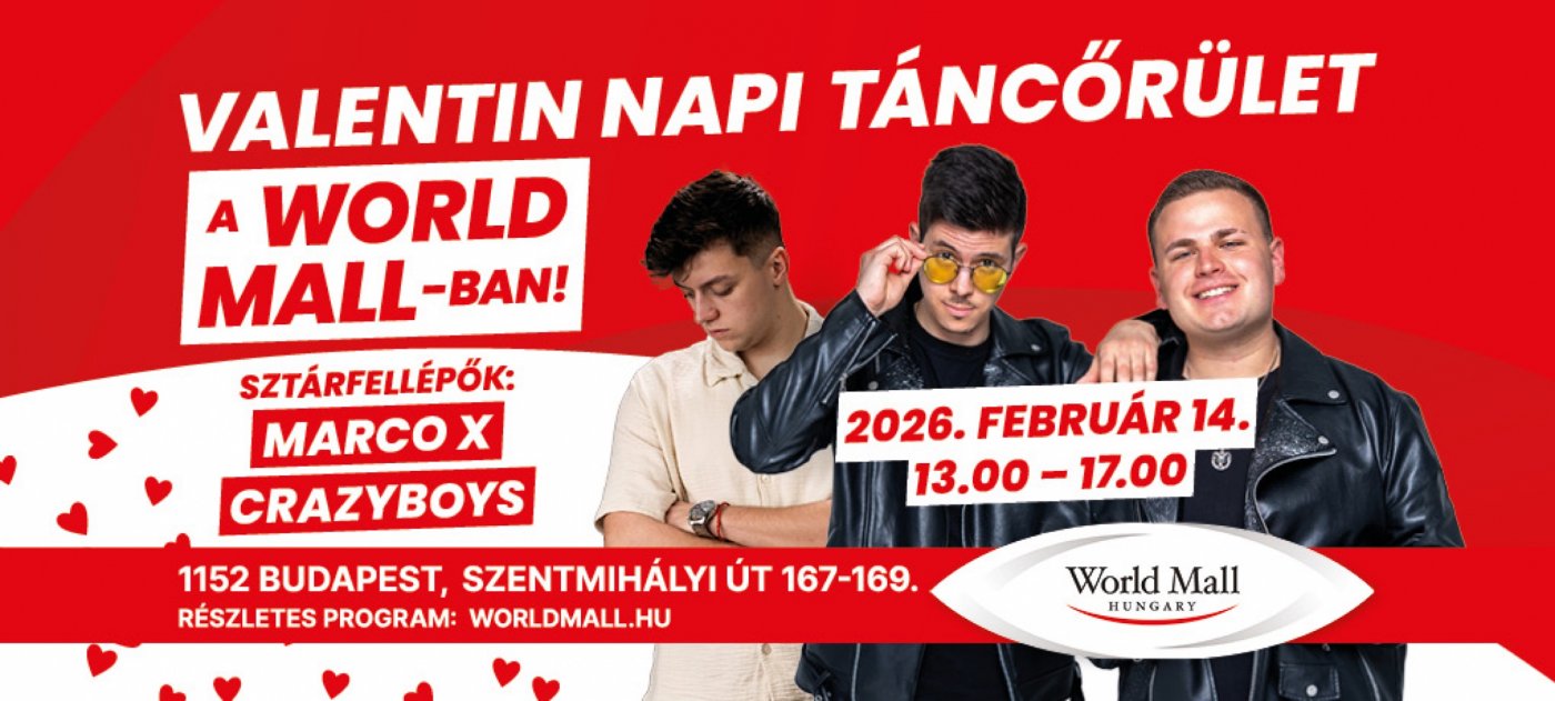 alentin Napi Táncőrület a World Mall-ban – CRAZYBOYS és Marco X élő fellépésével