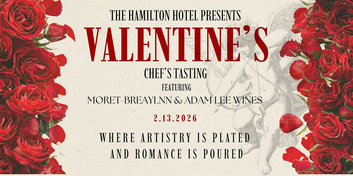 Celebrate Valentine’s weekend with an intimate, chef-driven tasting experience at The Hamilton Alpharetta. Join us for a curated multi-course dinner highlighting refined, seasonal cuisine paired with wines from Moret-Breaylnn & Adam Lee, known for expressive, thoughtfully crafted California wines.