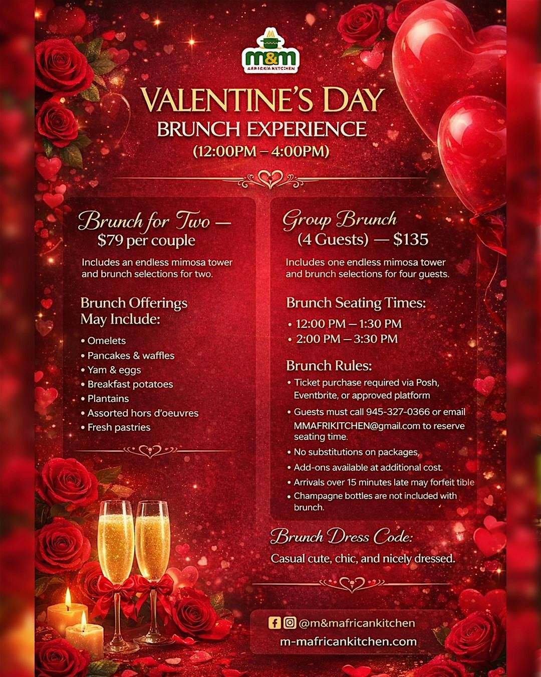 Celebrate love with a delightful Valentine’s Day Brunch at M&M African Kitchen & Bar! Join us on February 14, 2026 at 12:00 PM for a special culinary experience. Indulge in delicious dishes, sip on refreshing drinks, and enjoy the cozy ambiance with your loved one. Don't miss this opportunity to create lasting memories on this romantic day. See you there!