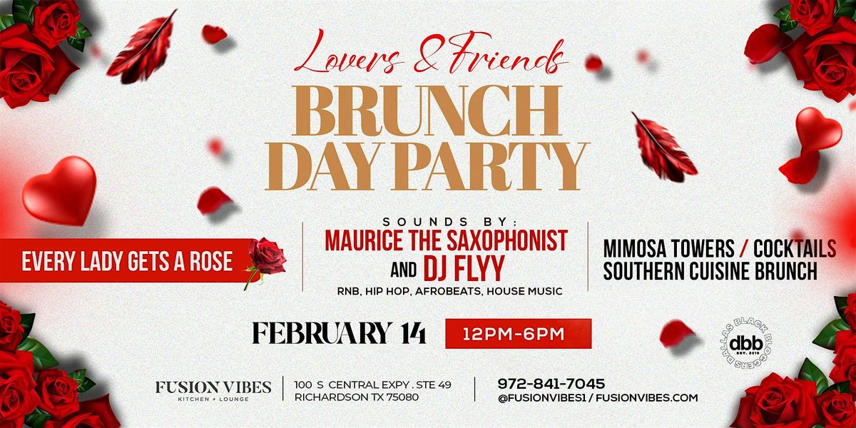 Join us on Saturday Feb 14th for a special Lovers and Friends Valentine’s Day Party Brunch Vibes, Free Roses + Chocolate.