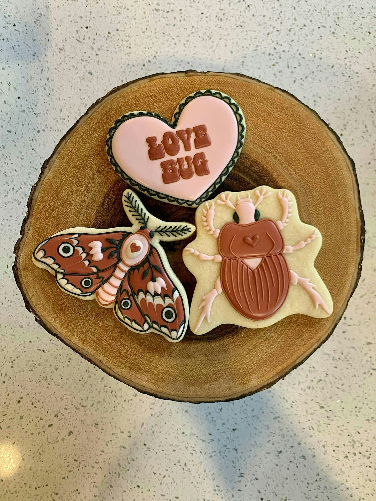 Celebrate love this Valentine's day in the sweetest way! This two hour class is beginner friendly, so no cookie descorating experience necessary! Each attendee will get to decorate one moth, one beetle, and one heart cookie.