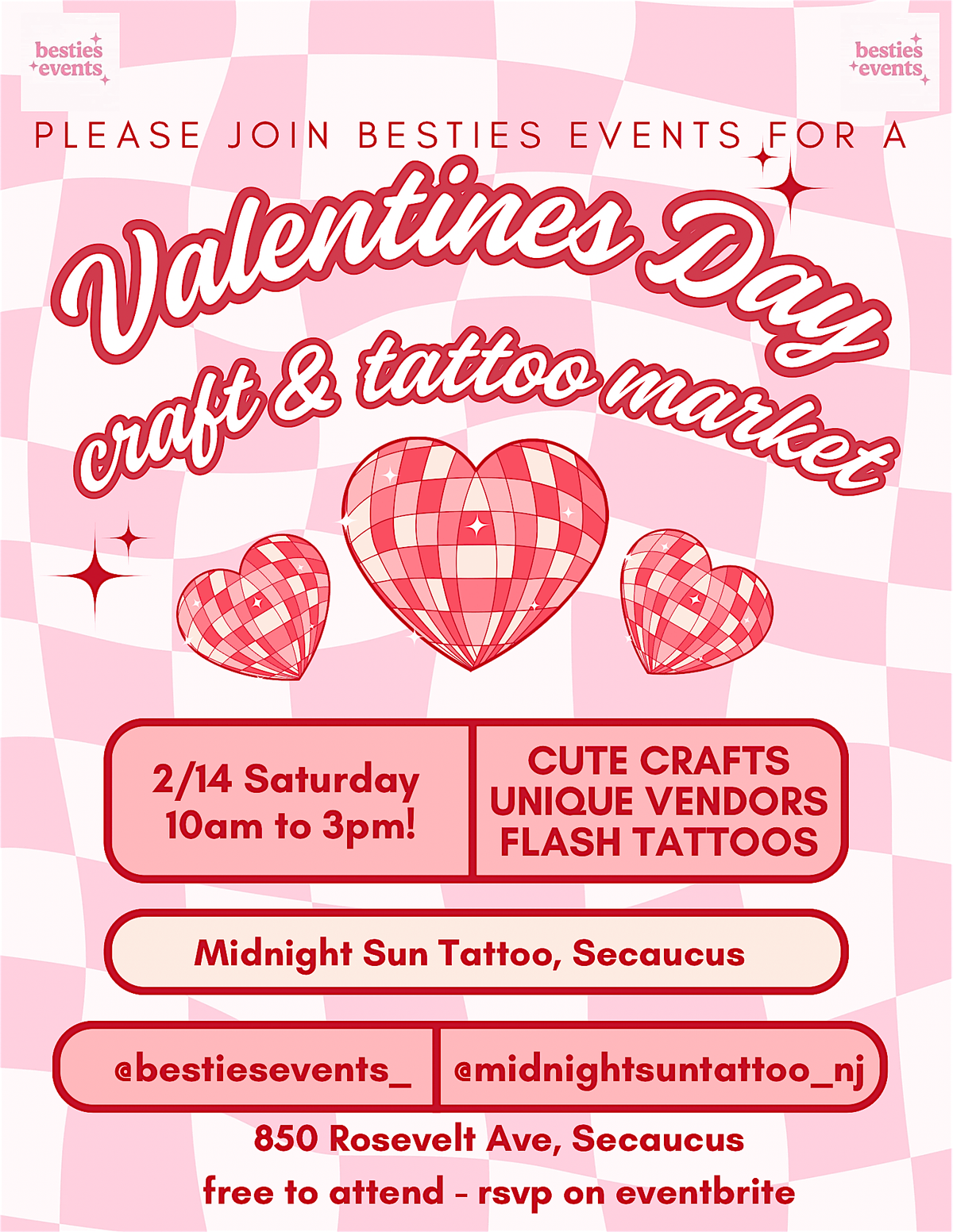 Looking for a fun way to celebrate Valentine’s Day? Swing by our Craft and Tattoo Market! It’s all happening in person, so come meet local artists and crafters showcasing unique handmade goods and awesome tattoo designs. Whether you’re hunting for the perfect gift or thinking about a fresh ink idea, this event’s got you covered. Bring your friends or that special someone and enjoy a chill day full of creativity, love, and good vibes!