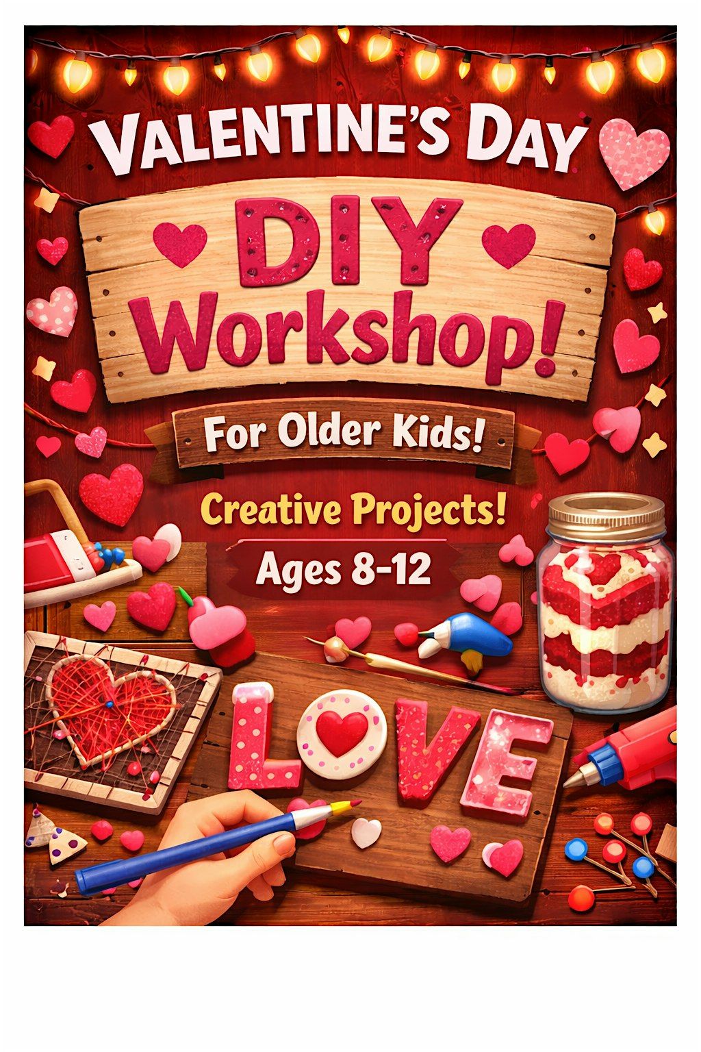 This Valentine’s Day workshop is designed for older kids who enjoy hands-on creative projects and working with a variety of materials. Participants will design and create Valentine-themed art pieces while developing artistic skills and confidence.