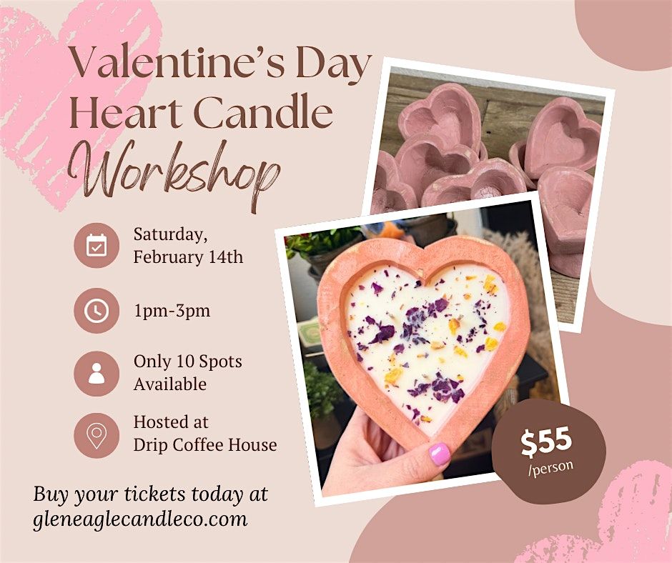 Create a one of a kind heart-shaped candle on Valentine’s Day. This class is hosted at Drip Coffee House in their cozy cafe. Only 10 spots