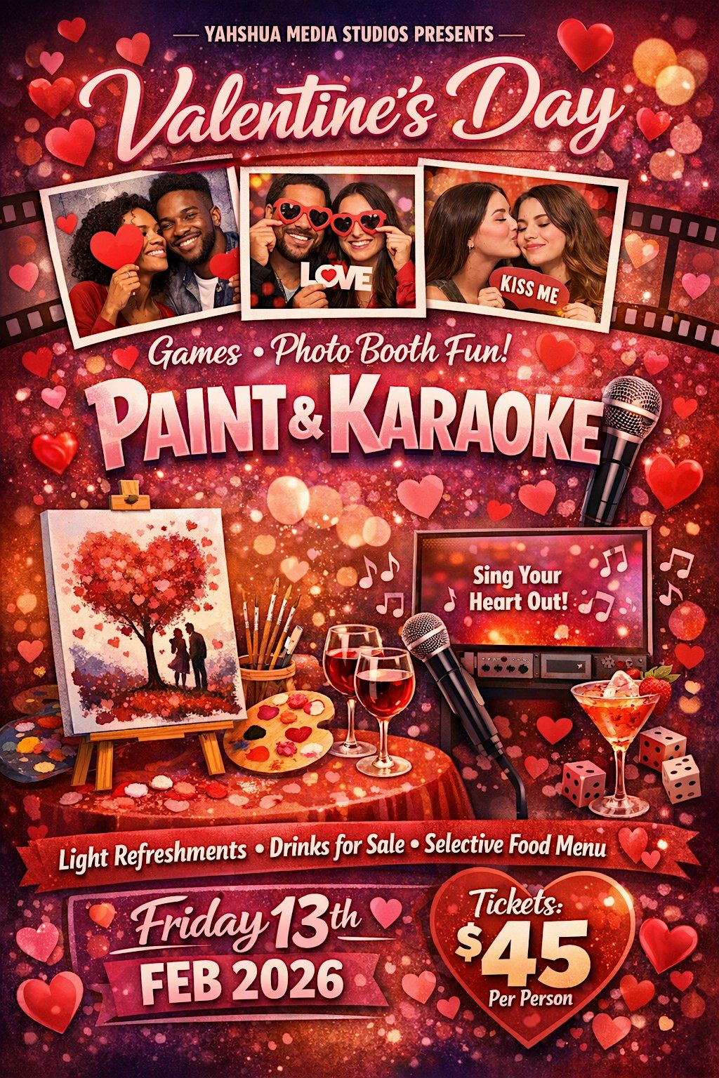 Join us for a fun Valentine’s Day paint & karaoke night—sing your heart out and get creative together!About this Event