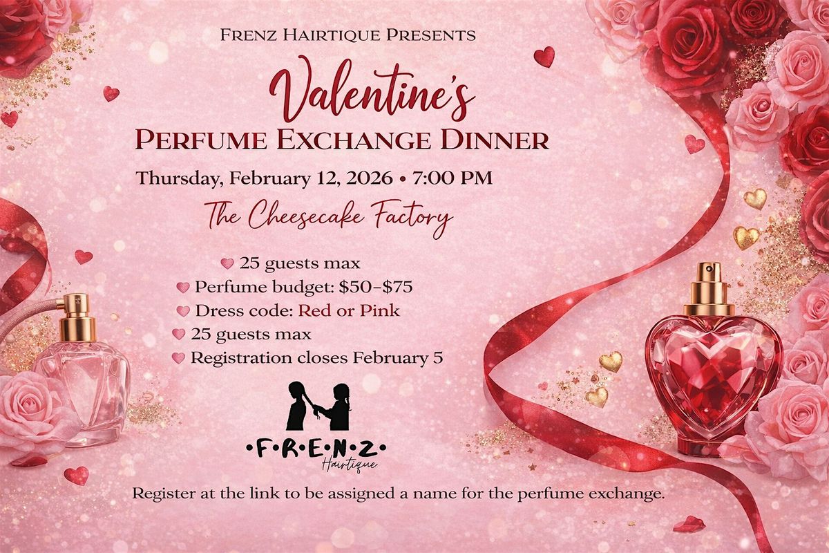 Join us for an intimate Valentine's Day Perfume Exchange & Dinner on Thursday, February 12 at 7 PM at the Cheesecake Factory.