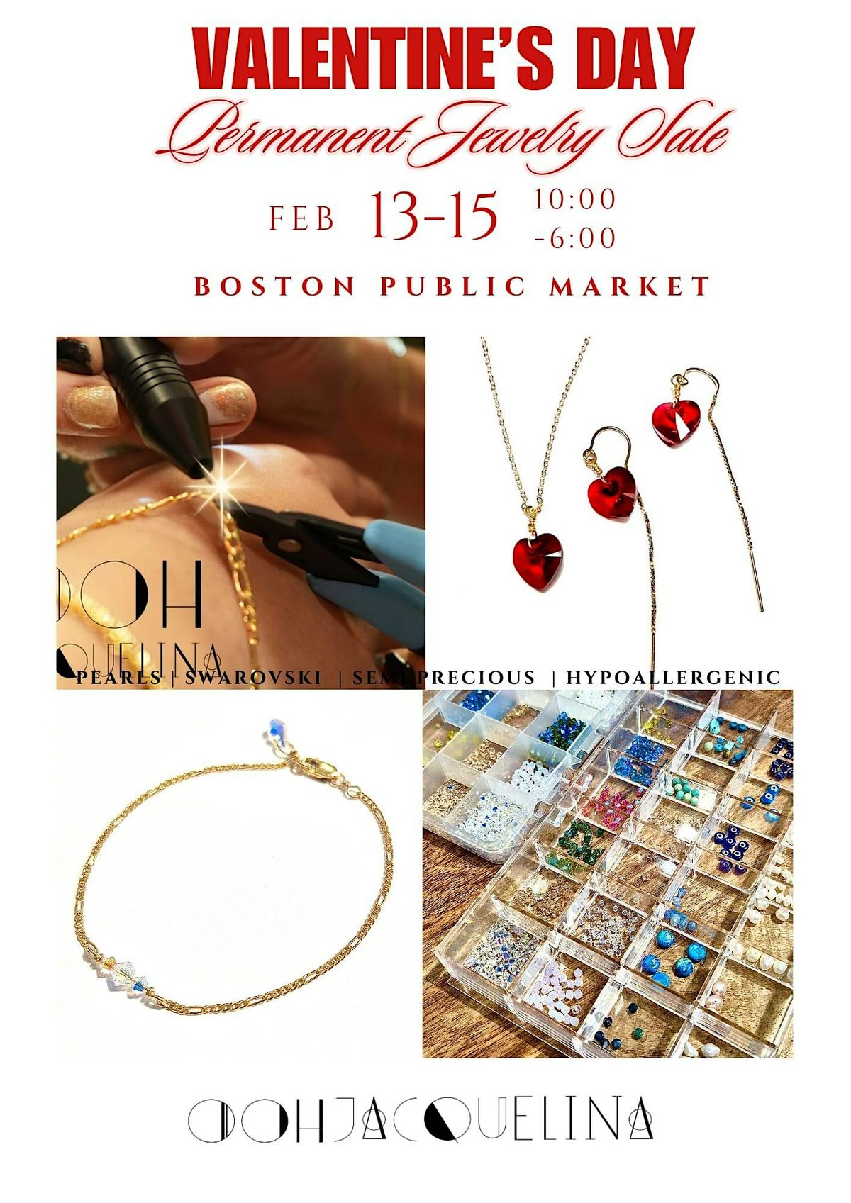 Valentine's Day Special permanent jewelry or customize your own regular jewelry open house Feb 12th-16th!!!! Come by Boston Public Market anytime this Valentine weekend (Thurs, fri, sat, sun) and get yourself and your loved ones permanent jewelry. Just walk in! First come first serve.