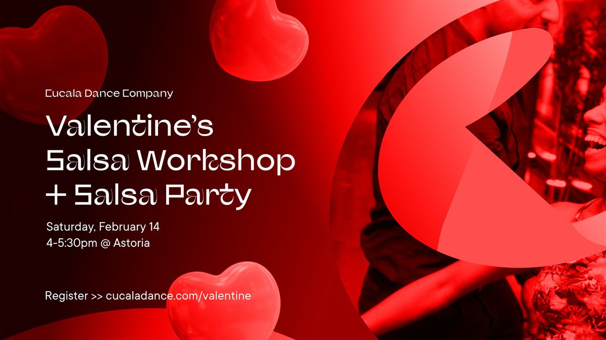Get ready for a Valentine's Day Workshop and Salsa Party, where you'll learn salsa, enjoy a romantic atmosphere, and dance the night away!
