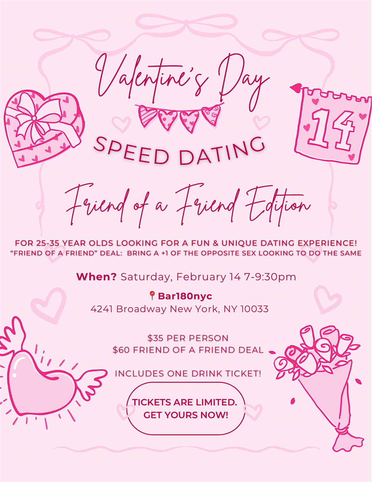 Welcome to Valentine’s Day Speed Dating: Friend of a Friend at Bar 180!