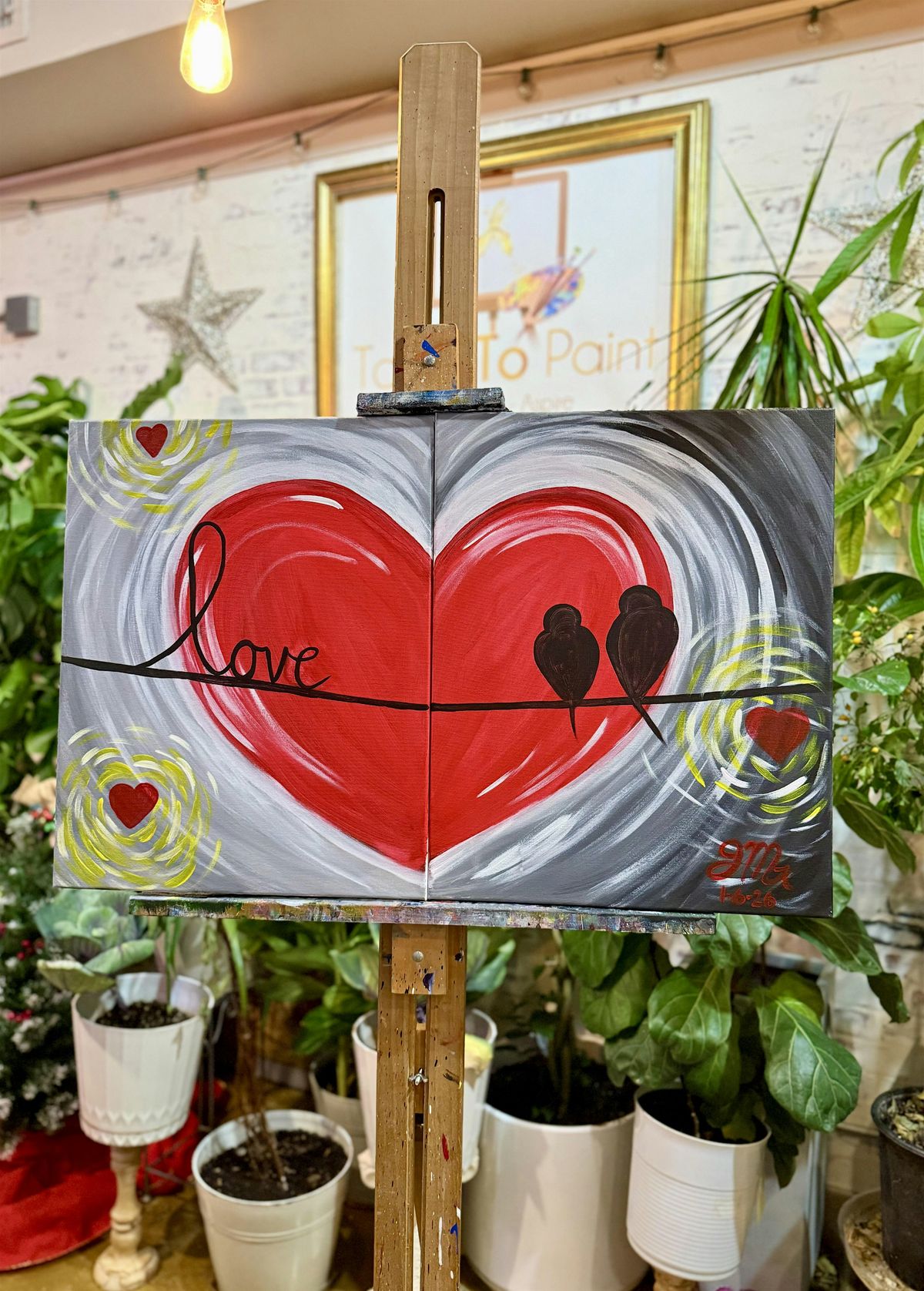 Welcome to our Valentine’s Day Two Part Sip and Paint event at Toast To Paint! Join us for a fun-filled evening of creativity and romance. This in-person event is perfect for couples looking to celebrate Valentine’s Day in a unique way. Sip on your favorite drinks while you paint a masterpiece together. Let your inner artist shine as you create memories that will last a lifetime. Don’t miss out on this special event - reserve your spot today!