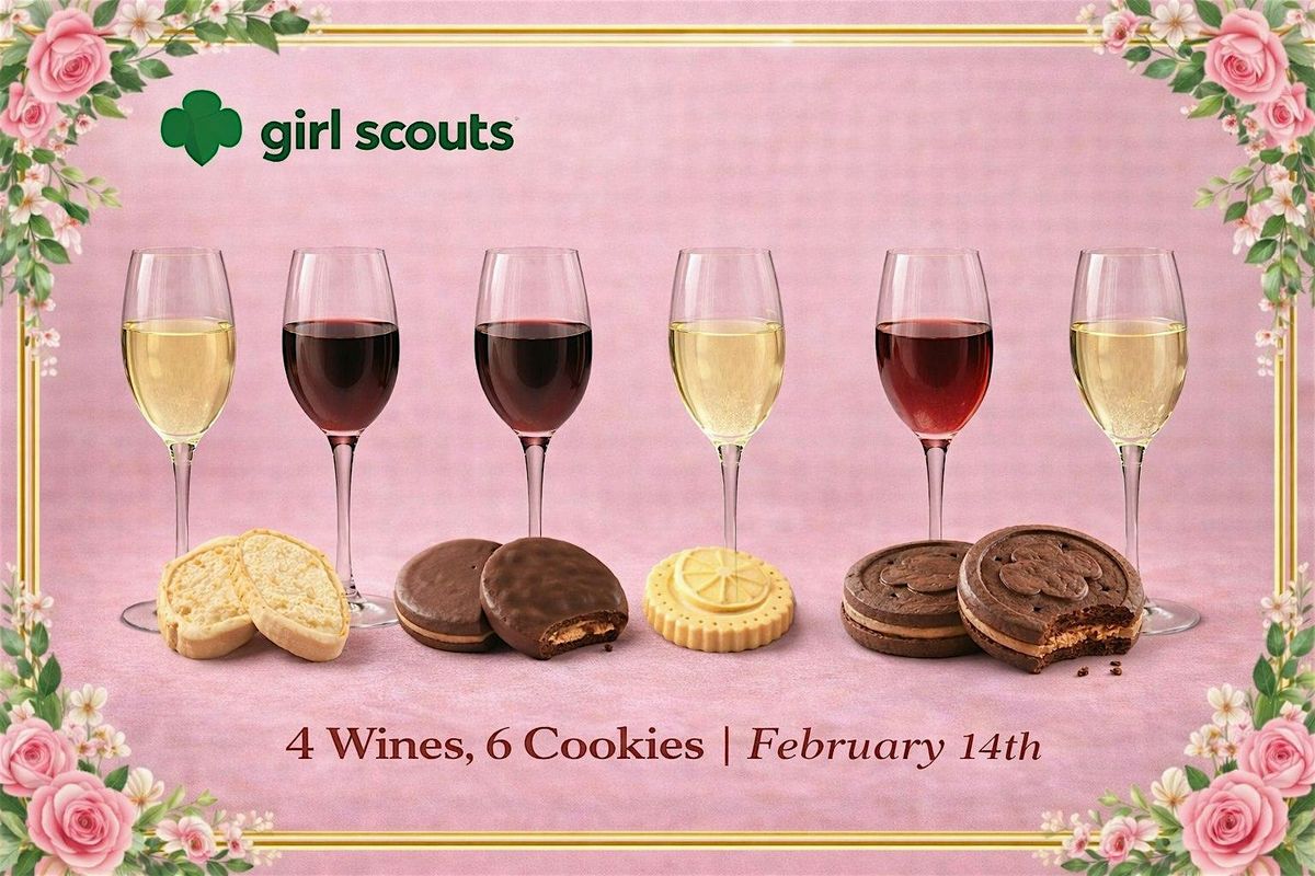 Join us for a guided dessert-style wine tasting pairing six thoughtfully selected wines with iconic Girl Scout cookies; Trefoils, Caramel Delights, Thin Mints, Peanut Butter Patties, Lemonades, and ExploreMores.