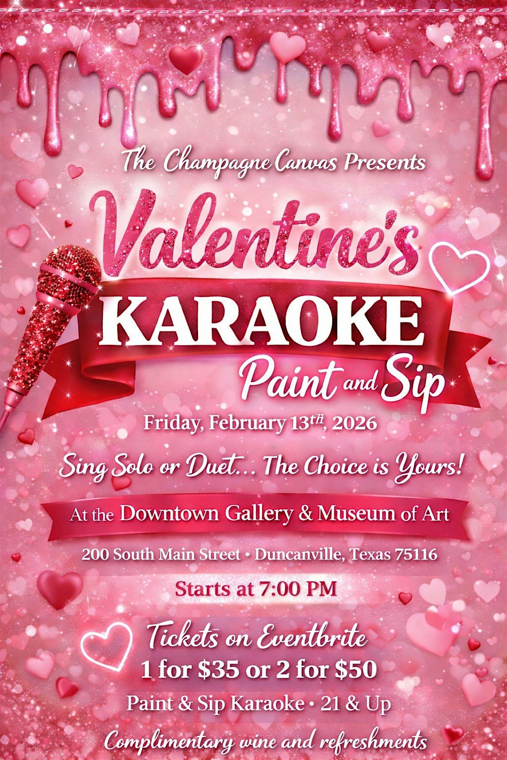 Get ready for a fun night of singing, painting, and sipping your fave drinks this Valentine’s!About this Event
