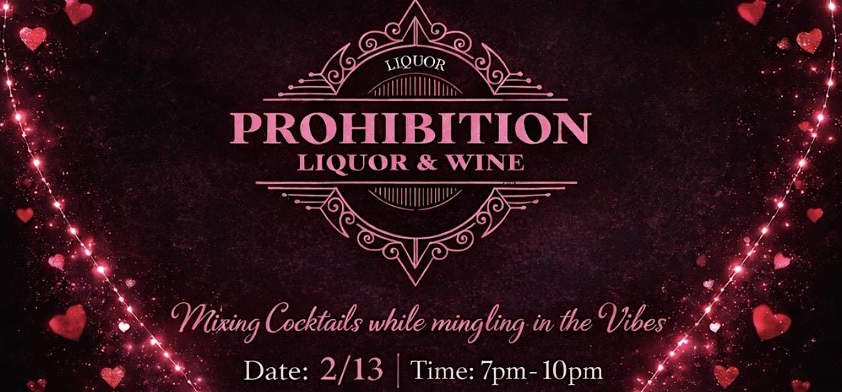 Join us for an intimate and elevated Valentine’s experience at Prohibition Liquor and Wine! Whether you’re coming with a partner, friends, or solo, this Mix & Mingle is designed for great vibes, cocktails, and connection.