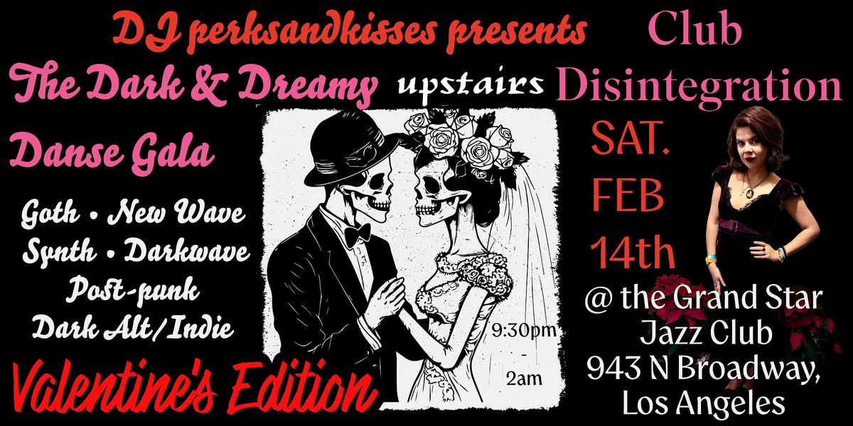 SAT. FEB. 14th, DJ perksandkisses hosts a special Valentine's Edition of Club Disintegration, the dark & dreamy danse gala in Los Angeles!