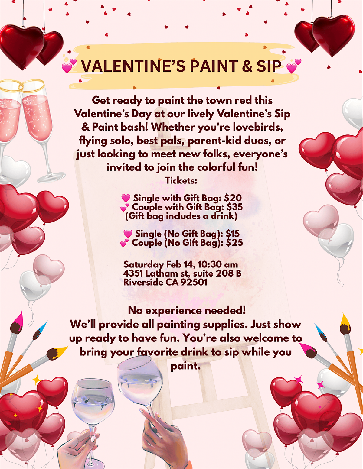 Celebrate Valentine’s Day in a fun and relaxed way at our Valentine’s Sip & Paint 🎨🍷