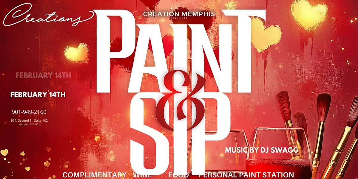 CreationsMemphis is a new upscale Art Studio located in Downtown Memphis. At CreationsMemphis, you'll be able to enjoy an upscale experience while creating a special piece of art of your very own! Music will be supplied by Radio DJ Swagg. Every ticket includes complimentary wine and/or cocktails, charcuterie, and personal art stations. Complimentary rose and chocolates will be provided. On-site Artist will be available to help direct creativity.