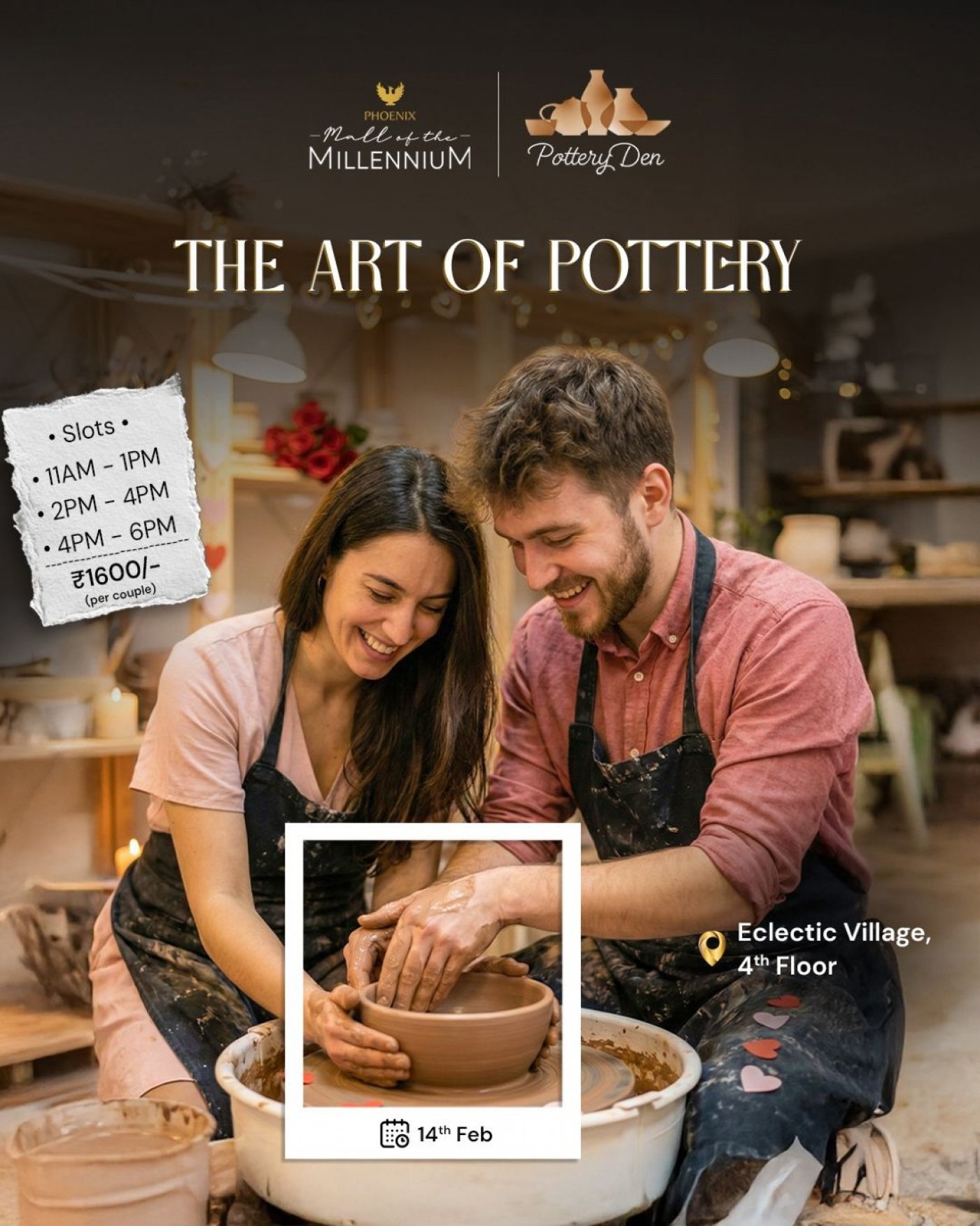 This Valentine’s Day, get creative with your partner at The Art of Pottery: A Romantic Creative Experience on 14th Feb at Phoenix Mall of the Millennium, Wakad, Pune—where love meets art