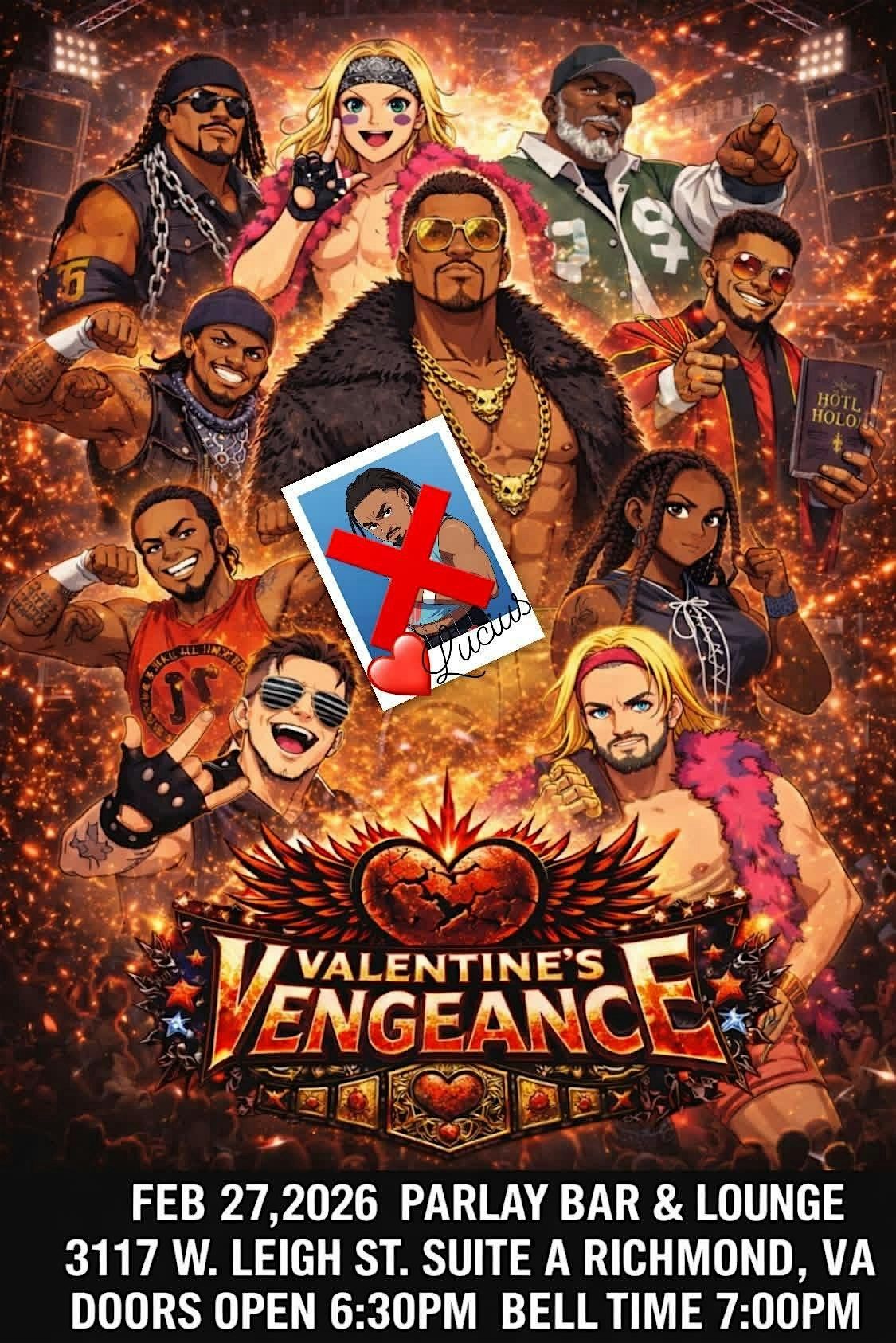Valentine’s Vengeance comes to Parlay Bar and Lounge as CCW delivers an up-close night of live pro wrestling. Grab food and drinks while the action unfolds just feet away. Doors open at 6:30 PM, bell time at 7:00 PM. Tickets are $20 in advance or $25 at the door. The night peaks with a Championship Heartbreak Hotel Ladder Match, where the belt hangs high and nothing is off limits.