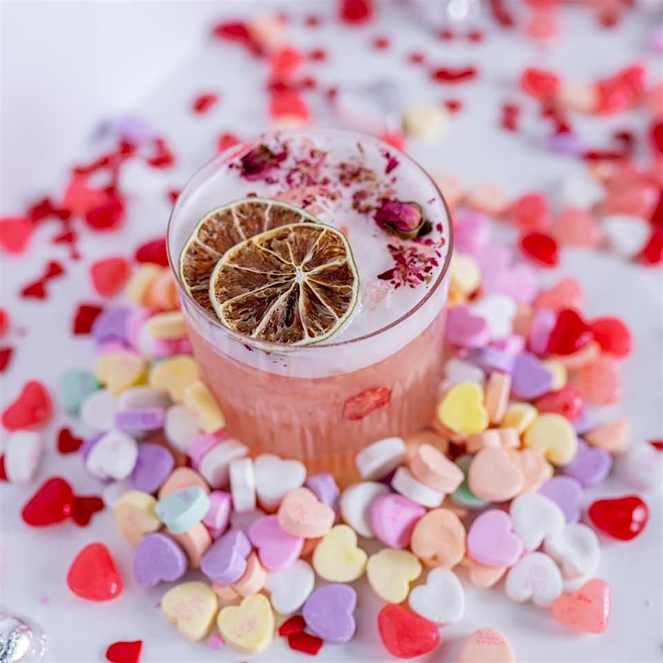 You’ll learn how to properly shake, stir, measure, garnish, and balance flavors, all in a relaxed, upbeat atmosphere with great music and Valentine’s vibes.