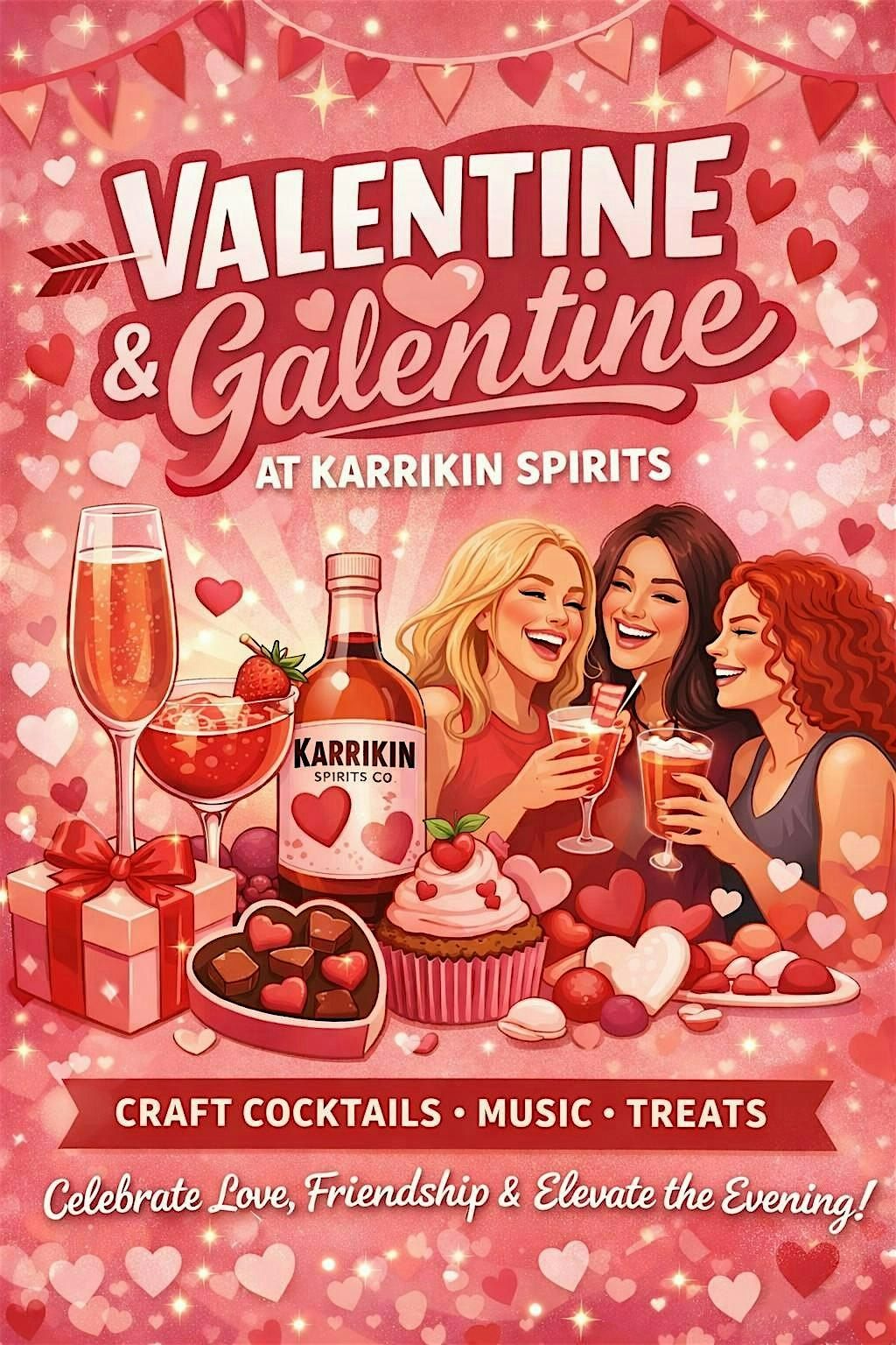 Sip something pink, snack on sweet bites, and celebrate love & friendship. A playful Valentine & Galentine night at Karrikin.