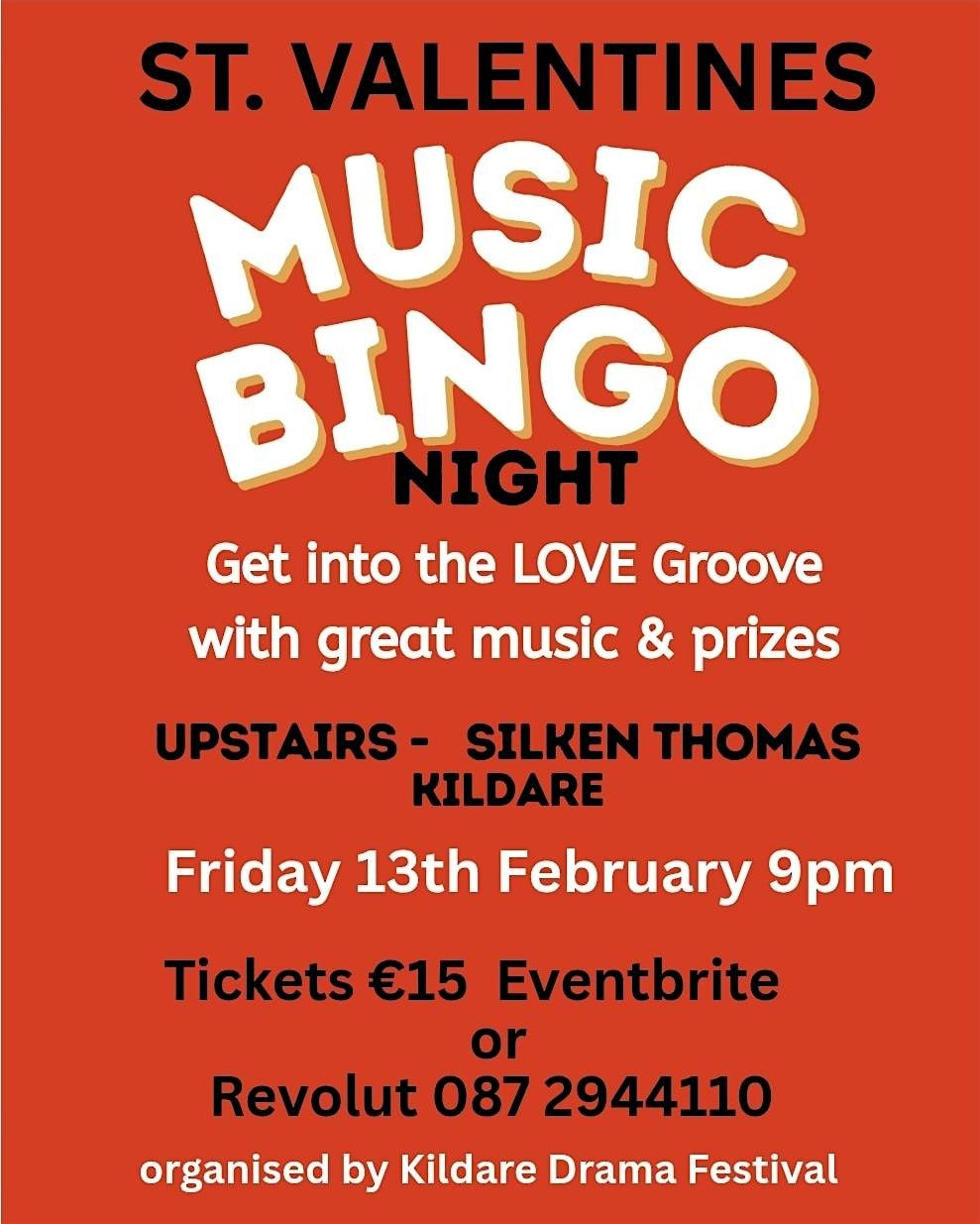 St Valentine's Music Bingo night in Kildare.Have a great night out with your friends. Brilliant music, great prizes, as ove fills the air.