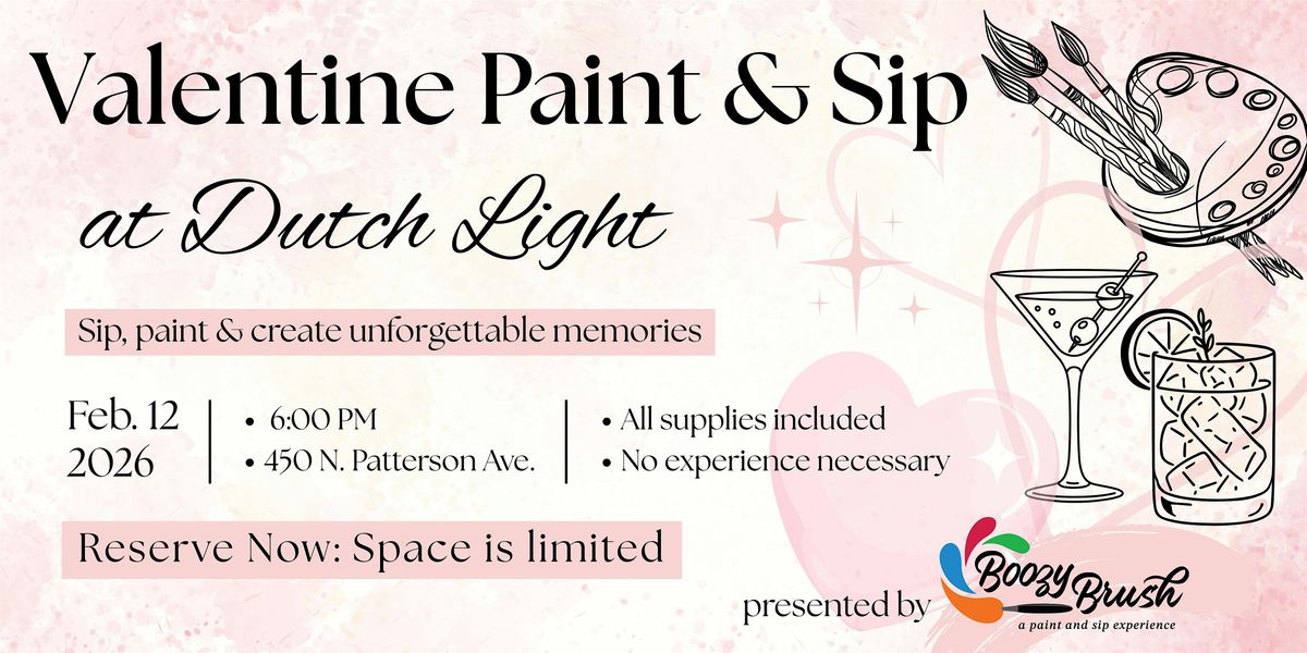 You’re invited to a Valentine’s Paint & Sip Experience at the enchanting Dutch Light Cocktail Lounge