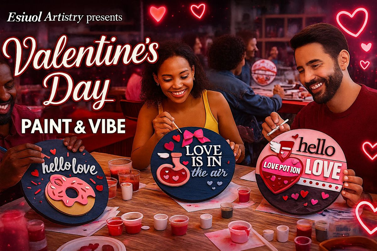 Get ready to unleash your creativity and feel the love this Valentine's! Join us for an in-person session where vibes meet art. Whether you're flying solo or bringing your crew, it's all about good times, great company, and some seriously cool painting. Don't miss this chance to chill, paint, and vibe in an elevated atmosphere that'll make your heart smile.