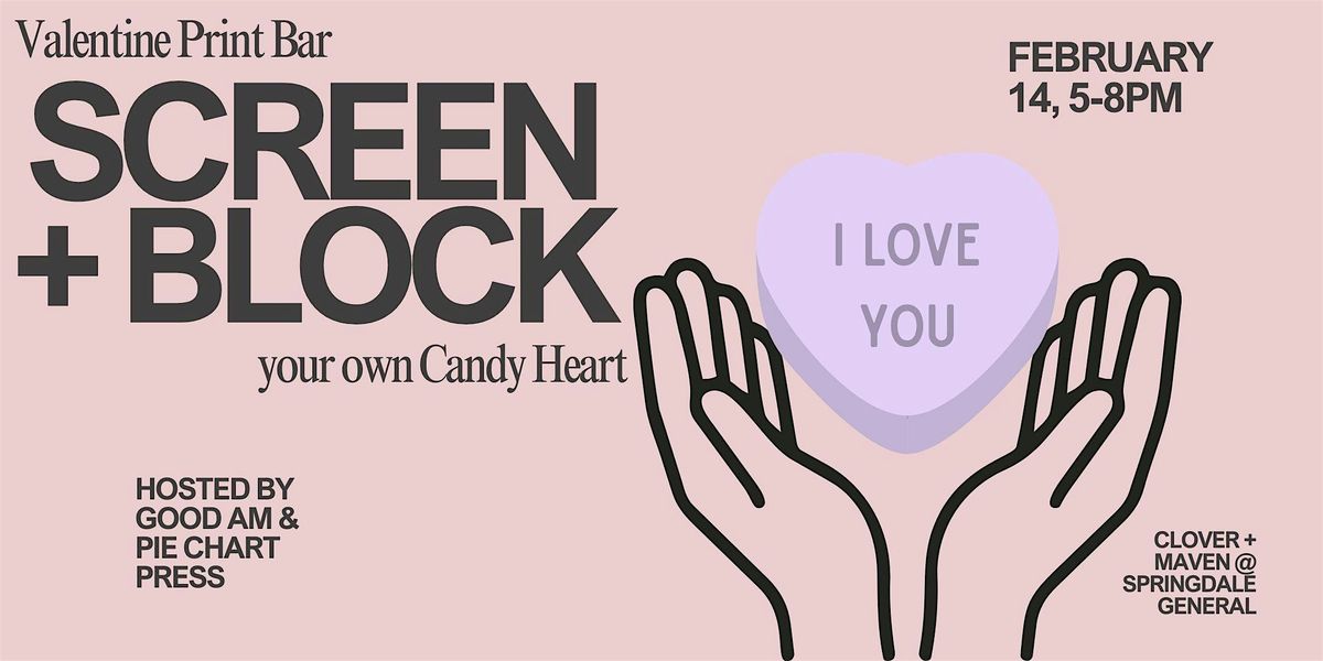 Brittany of Pie Chart Press will help you screen print a candy heart on base of your choice, then Annabelle of Good AM will help you block print a message of your choosing on top! A selection of letters & sayings will be available.