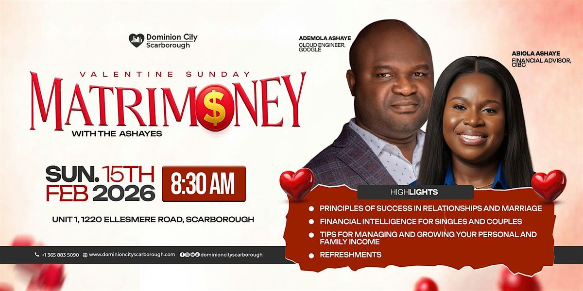Get ready for an unforgettable Valentine Sunday experience! MATRIMONEY is more than an event—it’s a transformational gathering designed to empower singles and couples with the right mindset, principles, and practical tools for thriving relationships and financial success.