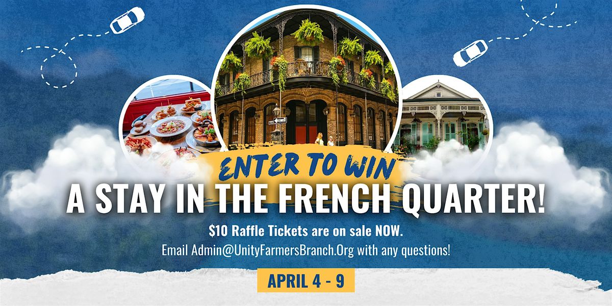 Raffle tickets are $10 - enter to win a chance to stay at a beautiful property in the French Quarter April 4-9 2026! Come for the delicious meal and fellowship - stay for the silent auction and raffle drawing! RAFFLE WINNER NOT REQUIRED TO BE PRESENT TO WIN.