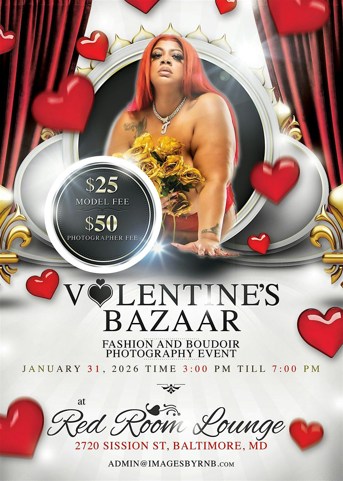 Welcome to the Valentine's Bazaar - Photography Event happening at Mass Creations Studio! 📸 Join us on January 31, 2026 at 3:00 PM for a fun-filled day capturing beautiful moments of you. Whether you're a beginner or a pro, this event is perfect for all photography enthusiasts; models and photographers. Don't miss out on this opportunity to showcase your creativity and meet like-minded individuals. See you there! 🌹 (Eastern Time) (This event is for adults only. Models may be semi nude or nude)