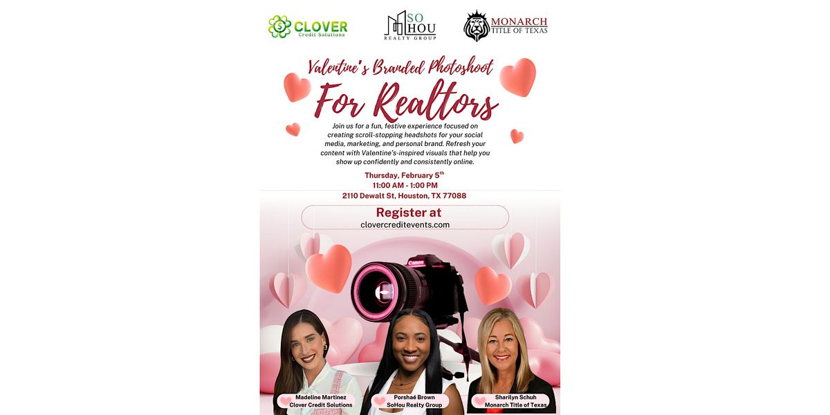 Join us for a Valentine’s-themed Headshot Event exclusively for Realtors on February 5th from 11:00 a.m. to 1:00 p.m. 💕📸