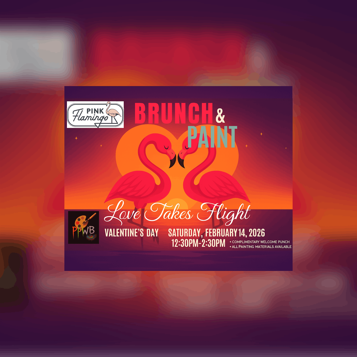 Celebrate Valentine’s Day with a festive, joy‑filled Brunch & Paint experience at Pink Flamingo Baltimore! Whether you’re coming with a partner, a friend, or flying solo, this event is all about creativity, connection, and holiday love.