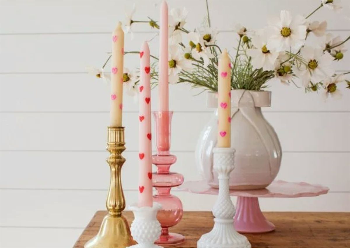 Each guest will receive four taper candles to decorate two classic ivory and two in colours of your choice. We’ll start with a short demo of painting techniques, then you’ll have free time to create your own beautiful designs. From simple hearts and patterns to delicate florals, you can make your candles as romantic, playful, or elegant as you like, with examples and inspiration throughout.