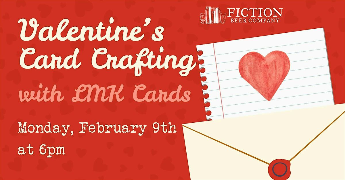 Join us at Fiction Beer Co for a chill evening of Valentine's themed crafting. Each ticket gets you three greeting card making kits and a beverage. You'll receive step-by-step instructions on how to make each valentine, with lots of options to personalize and make it your own. Cheers!