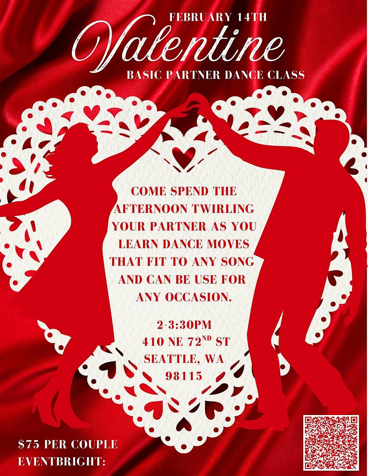 This beginner friendly partner dance class is designed for couples of all experience levels and teaches a simple, versatile dance you can use with almost any music. You'll learn the fundamentals of leading and following, smooth transitions, and easy patterns that feel natural and fun. No choreography or pressure. Perfect for couples who want a memborable date, are preparing for a wedding, or simply want to feel more comfortable and playful on the dance floor. Come as you are and leave with a shared skill you can enjoy long after this class ends.