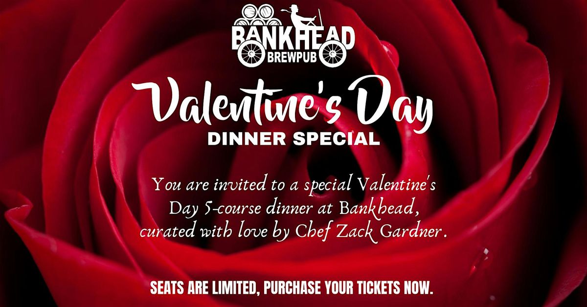 Love is in the air! Treat your valentine this year with a 5-course Valentine’s Day dinner at Bankhead Brewpub, curated with love by Chef Zack Gardner. Romantic atmosphere, music and an elevated culinary experience; a night your valentine will always cherish!