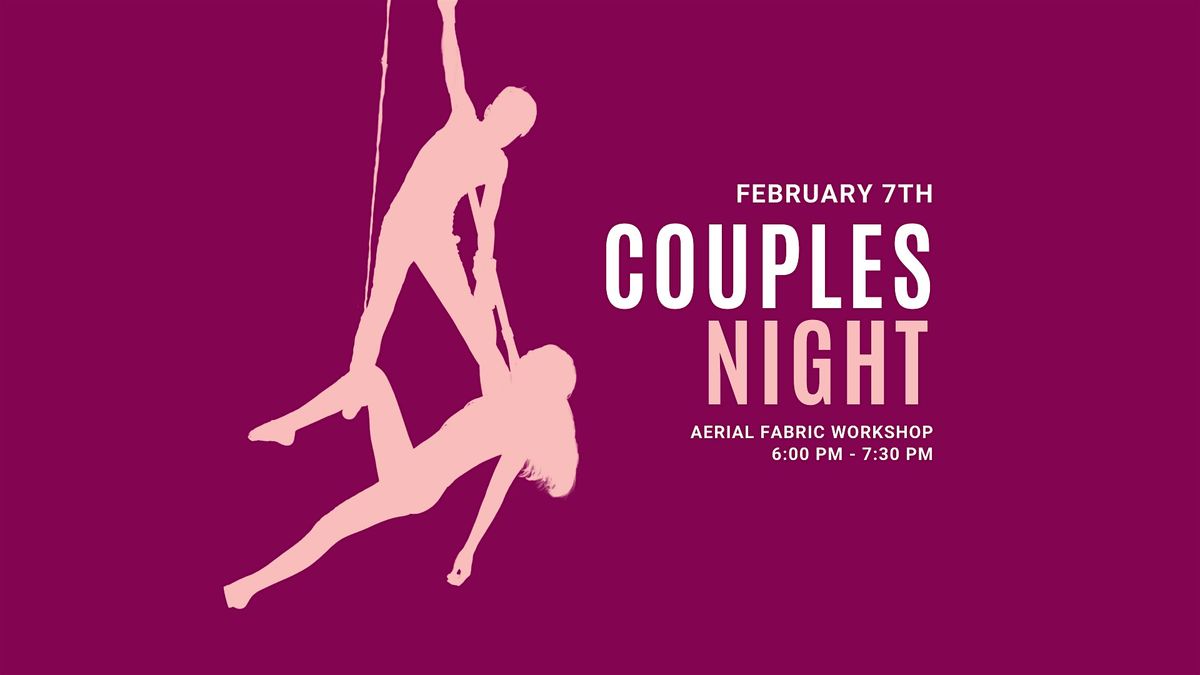 In this 1.5 hour Couples' Night workshop, we invite you to explore the air and try a new skill with someone you love -- whether that's a crush, a bestie, or a Valentine. Learn single and double's poses, skills, and choreography on aerial fabric. Complete beginners welcome.