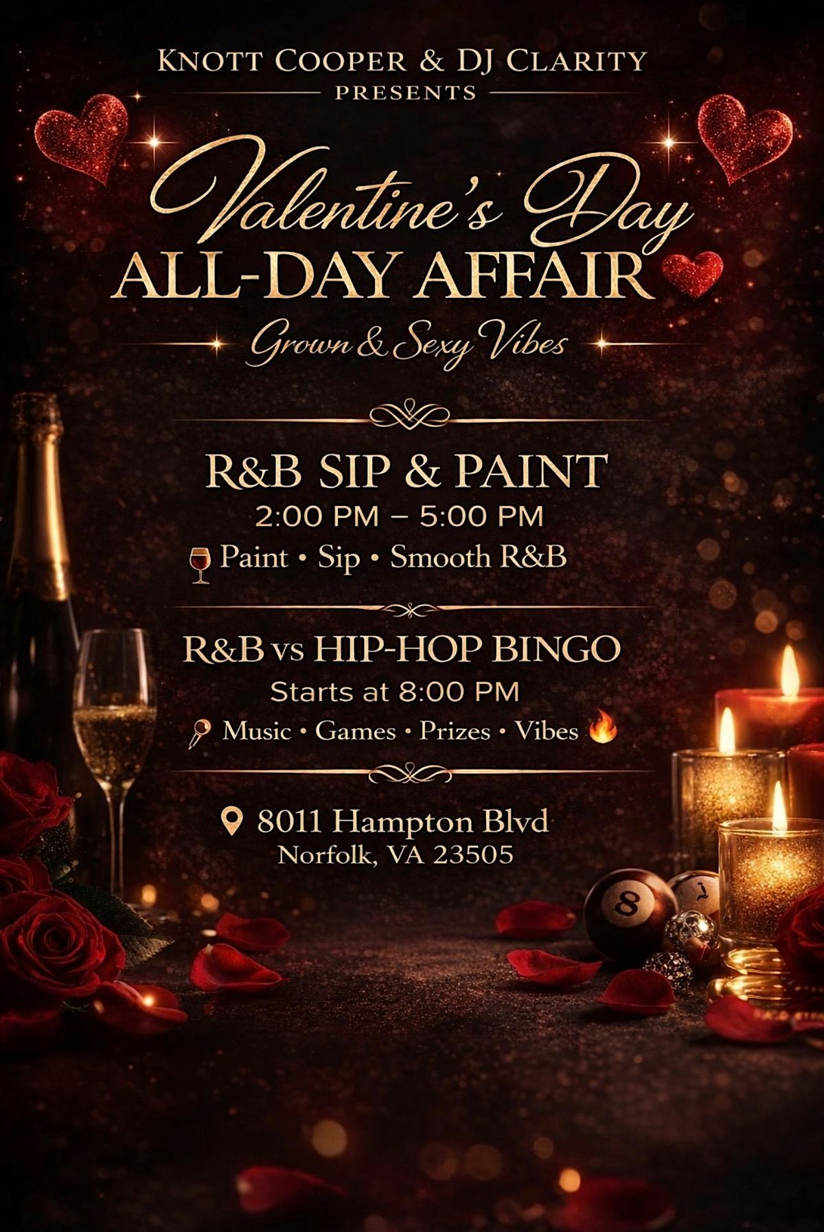 Get ready to vibe all day long first with our R&B Sip N Paint and then with R&B VS Hip-Hop Bingo with prizes and free hors d oeuvres.