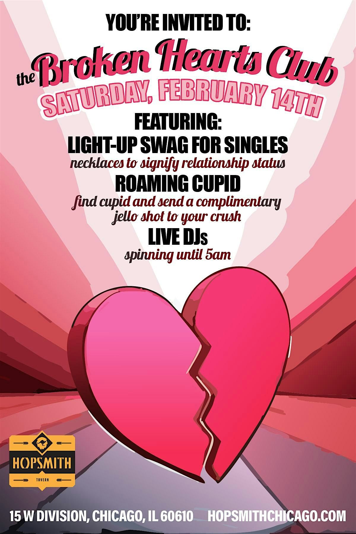 Come to the Broken Hearts Club at Hopsmith on Saturday, February 14th!About this Event
