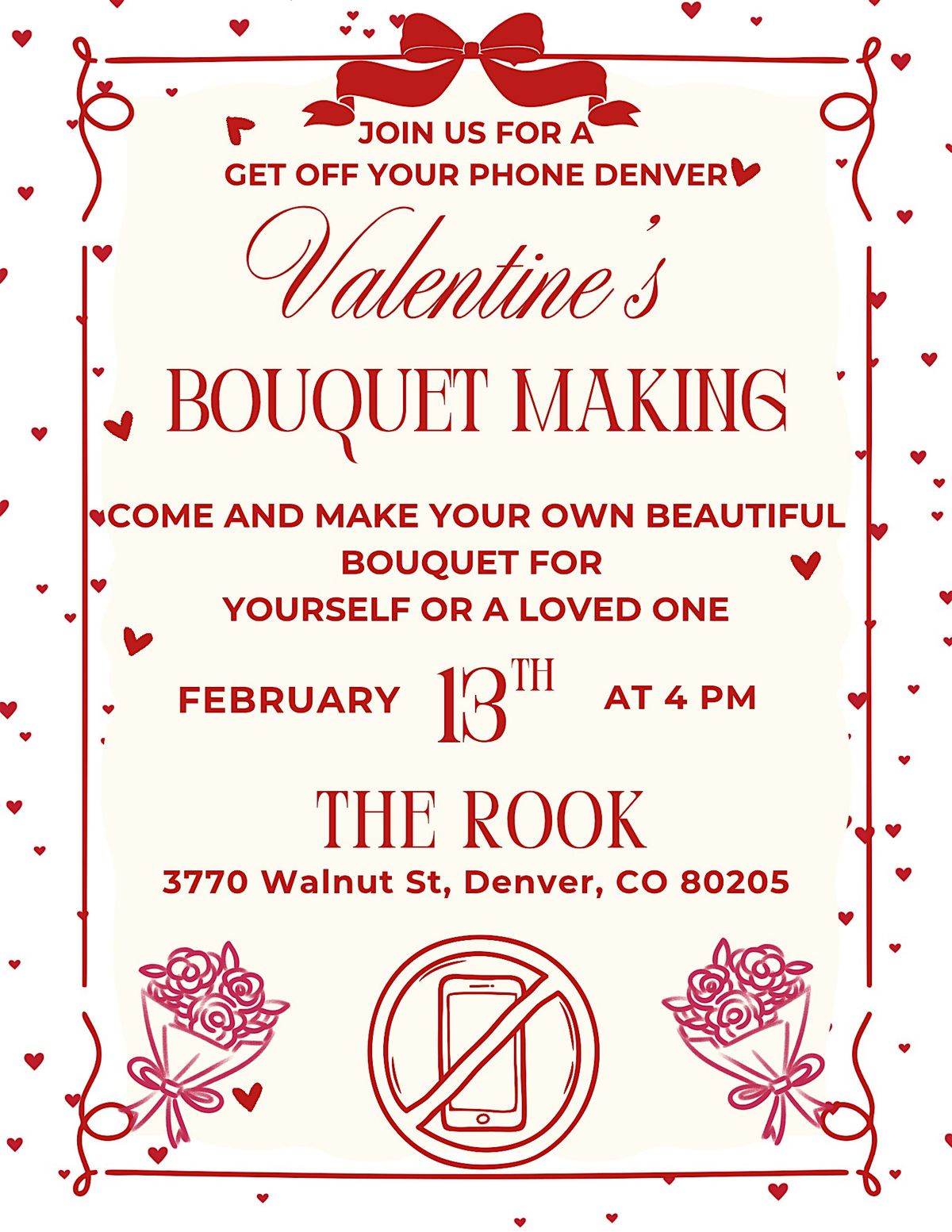 Join us for a fun & hands-on in-person workshop where you'll create your own beautiful Valentine's Day bouquet. Whether you're gifting it to someone special or just want to treat yourself, this event is all about spreading love and creativity. No experience needed—just bring your lovely self and get ready to bloom!