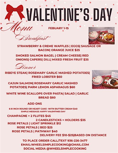 Choose from a curated Valentine’s Day menu available February 1–15, featuring breakfast and dinner options prepared fresh with love.