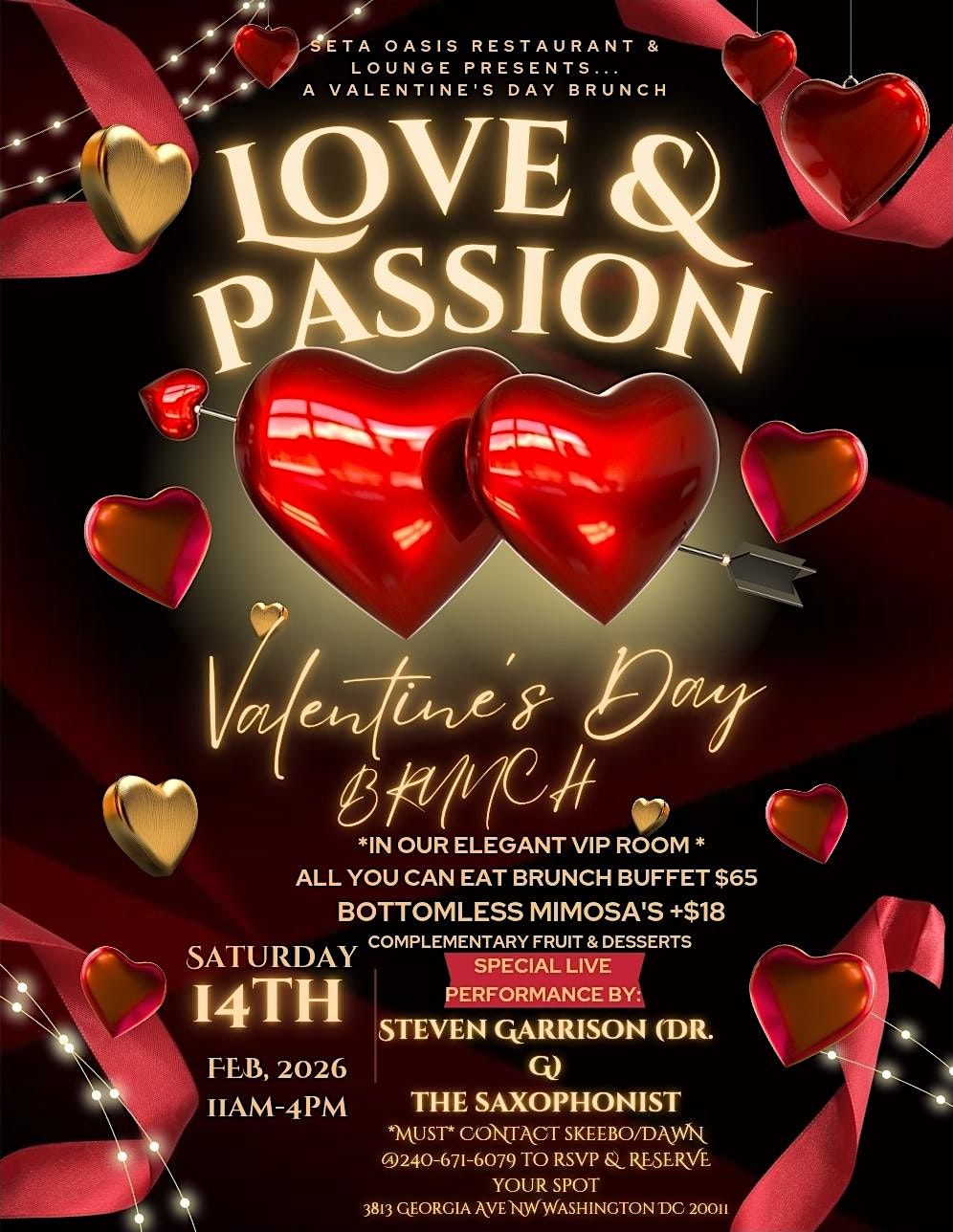 Celebrate love with us in style at Seta Oasis, Restaurant & Lounge. Get ready for a lovely day filled with delicious food, great vibes and live music! This event is the perfect way to celebrate love with friends, family, or that special someone. Expect tasty dishes, refreshing drinks, and a cozy atmosphere that says you belong here. Don't miss out on a fun, relaxed, and heartwarming start to your Valentine's Day!