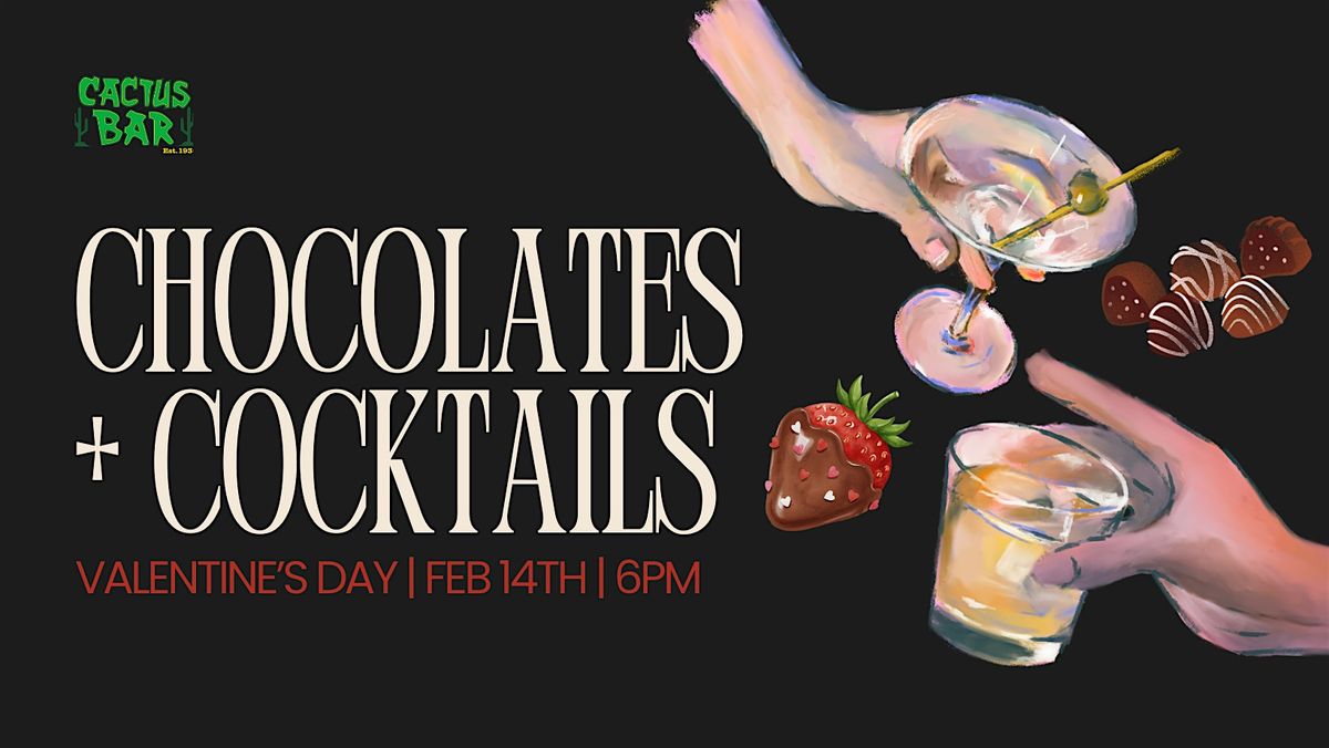 Join us for a guided pairing featuring four chocolate tastings matched with four handcrafted cocktails, highlighting whiskey, vodka, and a liqueur.