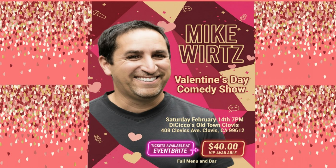Welcome to the Valentines Day Comedy Show featuring the hilarious Mike Wirtz! Get ready to laugh your heart out at DiCicco's Old Town Clovis on February 14, 2026 at 8:00 PM (Pacific Time).