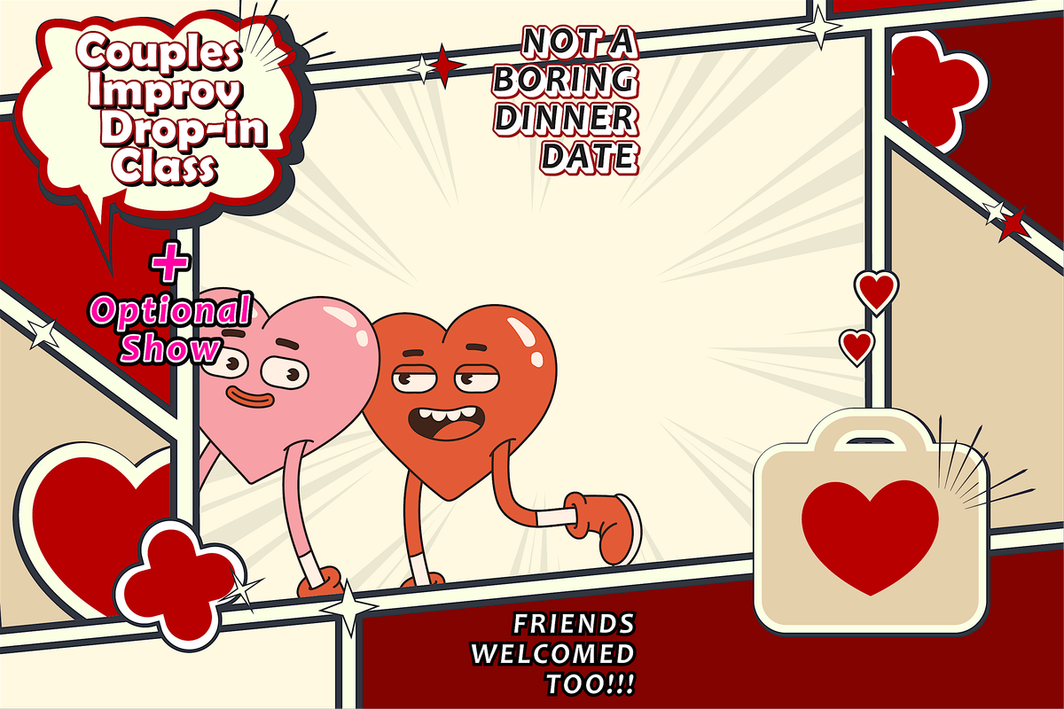 Looking for a Valentine’s plan that isn’t dinner and awkward eye contact? This goofy, low-pressure improv workshop is designed for two—and every ticket covers two people. Bring a romantic partner, best friend, situationship, or chaos buddy. You’ll play silly improv games together, collaborate a lot, laugh a ton, and absolutely do not need any improv experience. This is about connection, play, and having fun—not needing to try to be funny.