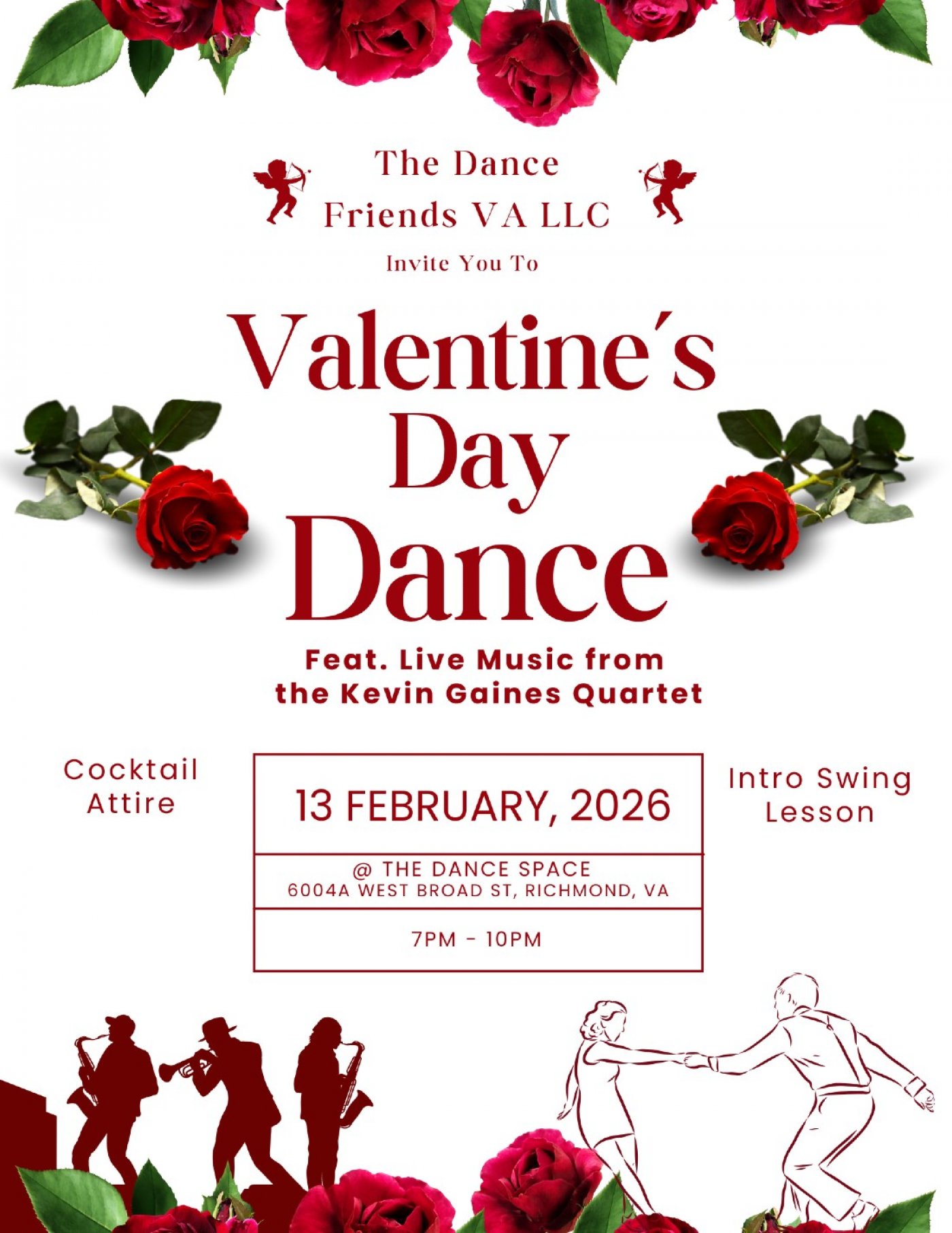 Romance is in the air, and the Dance Friends LLC invites you to celebrate Valentine’s Day with an unforgettable evening of live jazz, swing dancing, and connecting with our community at the Valentine’s Day Dance.