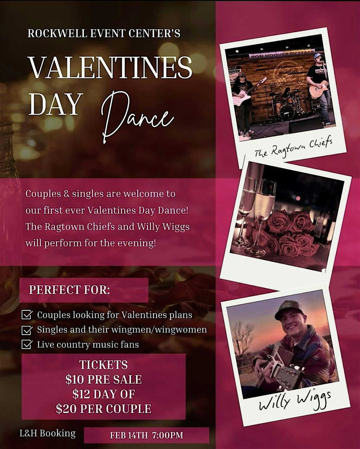 Couples and singles are welcome to our first ever Valentine's Day Country Dance! The Ragtown Chiefs and Willy Wiggs will be preforming!